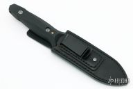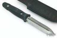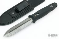 This Dagger by Allen Elishewitz features a Black Snow finished double-edged wasp blade with fullers, .175" blade stock and 1.100" blade depth, hidden tang construction. The handle is black G-10. Comes with a black leather sheath with stainless steel clip. Comes with COA. New from maker at the 2021 Blade Show.