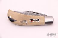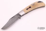 This Lannys Clip by Chris Sharp features a Damascus (1075 and 15n20) clip point blade with a nail nick. The handle features stainless steel bolsters with integral escutcheon and liners, mammoth ivory covers, stainless steel spring. Has half-stop, flush in all positions. Includes a padded zippered case and COA. New From Maker at the 2021 Blade Show.