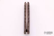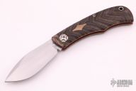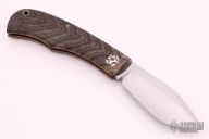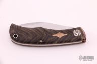 This slipjoint by Chris Taylor features a hand rub satin finished blade. The handle has pinched unique canvas micarta covers, copper liners and a satin stainless steel spring, copper shield escutcheon. Has half-stop, flush in all positions. Comes with a zippered case and COA dated 6-5-21. New from maker at the 2021 Blade Show.