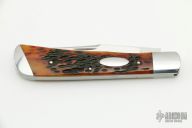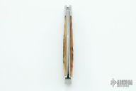 This Single Blade Trapper by Jeff Hawkins features a hand rub satin finished blade with nail nick and false top edge. The handle has stainless steel bolsters with integral liners, jigged bone covers, stainless steel escutcheon and spring. Has half-stop, flush in all positions. Comes with a zippered case. New from maker at the 2021 Blade Show.