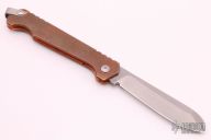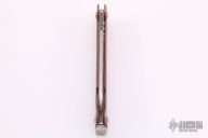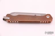 This Cracker Slipjoint by Jon Graham features a tumble finished blade with notched thumbrest. The handle has an integral copper frame with internal stainless steel spring and titanium lanyard bail. Comes with a brown leather slip sheath. New from maker at the 2021 Blade Show.
