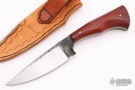 This Brute De Forge Hunter by Journeyman Smith Kevin King features a hand rub satin finished blade with forge finished flats and forged guard, .246" blade stock and 1.191" blade depth, full tapered tang construction. The handle has bloodwood scales. Comes with COA. New from maker at the 2021 Blade Show.