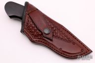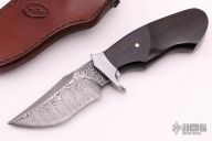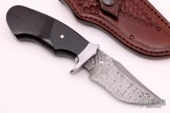 This Defender by Journeyman Smith Ben Seward features a Ladder Pattern Damascus (1080/15n20) blade with sharpened top edge, .204" blade stock and 1.362" blade depth, hidden tang construction. The handle has a stainless steel guard, African Blackwood grip with single nickel silver pin. Comes with a hand tooled brown leather sheath. Comes with COA. New from maker at the 2021 Blade Show.