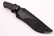 This Fighter by Journeyman Smith Ben Seward features a Damascus core San Mai blade with 410 SS cladding, sharpened top edge, .279" blade stock and 1.733" blade depth, hidden tang construction. The handle has a textured zirconium guard, Ancient Bog Oak grip with single nickel silver pin. Comes with a hand tooled black leather sheath. Comes with COA. New from maker at the 2021 Blade Show.