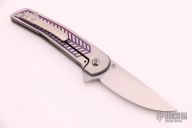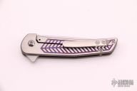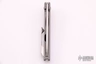 This Mini Scout Flipper by Alliance Designs features a hand rub satin finished blade. The handle has a milled and two-tone anodized titanium frame with a titanium tip up clip. Rides on bearings, nice detent, lockup and blade seating. Nice detent, lock up and blade seating.  New from Maker.