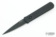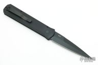 This 921 SWAT Godfather features a black blade with notched thumbrest. The handle has a black aluminum frame with black hardware, black push button and black stainless steel tip up clip. Comes with original box and papers. New From Maker.