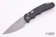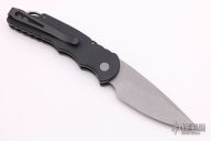 This TR-5 by Pro-Tech Knives features a stonewashed spear point blade. The handle has a black aluminum handle with stainless steel backspacer with lanyard hole, tip up blade stainless steel clip.  New From Maker.
