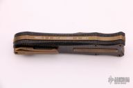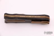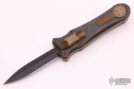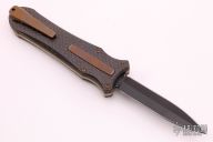 This knife is a Deadlock Model by Grant and Gavin Hakw. It has a black dagger blade. The handle has a lightning strike carbon fiber scales, anodized and tumbled titanium frame, tip down spring clip, and thumb slide. Comes with a drawstring bag. Grant and Gavin Hawk set out to create a double action OTF with no blade play.... They did it, NO blade play. Comes with tool and lube. New from maker at the 2021 Blade Show.