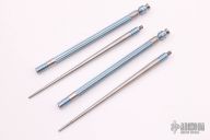These titanium chopsticks by Steven Kelly are a three-piece design with the screw on end caps that are made of titanium. Custom anodized. Light weight and very cool. Come in a leather sheath. Brand new from the maker at the 2021 Blade Show.