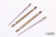 These titanium chopsticks by Steven Kelly are a three-piece design with the screw on end caps that are made of titanium. Custom anodized. Light weight and very cool. Come in a leather sheath. Brand new from the maker at the 2021 Blade Show.