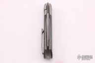 This Apache Front Flipper by Enrique Pena features a satin finished blade with a front flipper and notched thumbrest. The handle has titanium bolsters, black micarta scales with a titanium backspacer and matching tip up pocket clip. Includes a Pena X-Series padded box.   Brand New from Maker.
