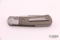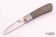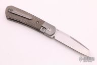 This Apache Front Flipper by Enrique Pena features a satin finished blade with a front flipper and notched thumbrest. The handle has titanium bolsters, green micarta scales with a titanium backspacer and matching tip up pocket clip. Includes a Pena X-Series padded box. Brand new from maker.