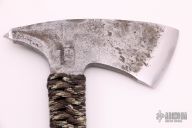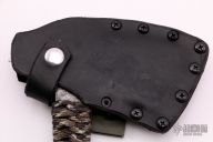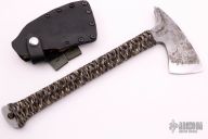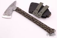 "The Cure" by Frank Landau features a hand forged head with a spike at the rear, forged finished flats, .271" blade stock, full tang construction with paracord wrapped handle. Comes with a black leather sheath with Molle clips. New from maker at the 2021 Blade Show. This thing is pretty bad ass!