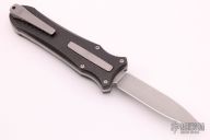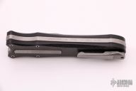 This knife is a Deadlock Model B. It has a drop point stonewashed blade. The handle has a carbon fiber and titanium frame with a tip down spring clip, anodized titanium. The thumb slide on the handle is also titanium and handle has titanium overlays. Comes with a drawstring bag. Grant and Gavin Hawk set out to create a double action OTF with no blade play.... They did it, NO blade play. Comes with drawstring bag, tool and lube. New Condition.