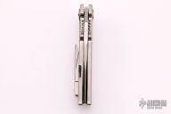 This Dominator Level 3.5 Version 4 by Darrel Ralph features a satin finished blade with notched thumbrest and flipper. The handle has a milled and satin finished titanium frame with bead blasted milling, and titanium backspacer. Comes with nylon zippered case, box and COA dated 04/16. Nice detent, lockup and blade seating. Excellent condition.