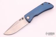 This MAC2 features a stonewashed drop point blade with dual thumbstuds and a notched thumbrest. The handle features an anodized titanium frame with a matching tip up pocket clip. Includes box and papers. New from Maker!