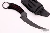 This Mako from Bastinelli Knives features a black tumble finished upswept blade with swedge, .158" blade stock and .910" blade depth, full tang construction. The handle has a black cord wrap over red cord and menuki with a one inch finger hole on pommel. Includes kydex sheath with TekLok and a padded zippered case. New from maker.