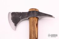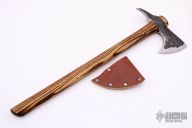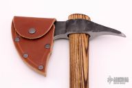 This tomahawk by Andrew K Smith features a hand forged head with a 3" spike at the rear. Has a 20" burnt hickory shaft. Comes with leather blade cover with snap. New From Maker!