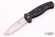 This AFO auto by Al Mar and Benchmade has a bead blast finished blade. Black aluminum handle with a lanyard hole. Hard to find. Excellent condition. Comes with nylon sheath.
