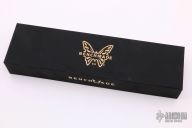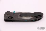 Part of Benchmade's Gold Class collector series, the 698-181 Foray combines beauty and elegance with durability and versatility to provide an everyday carry knife that's sure to turn heads. An attractive combination of classic lines and modern, highly-functional materials and workmanship, you'll be proud to carry the 698-181 Foray, and even more proud to show it off. With its 3.22-inch blade, the Gold Class 698-181 boasts a Rockwell Hardness rating of 58-60, providing a perfect blend of blade sharpness, edge retention, and toughness. The 698-181 features an exclusive Loki-patterned Damasteel blade - a Swedish made Damascus steel made using a powdered steel process to craft a high-quality blade that is both functional and beautiful, and offers superb toughness and edge retention. The sleek drop point blade shape is perfect for general everyday cutting tasks and applications, and the blade will sharpen well and remain sharp over much use. The marbled carbon fiber handle both looks great and provides a sturdy, durable, yet extremely lightweight grip and excellent control during use. Black mother of pearl inlays create a beautiful contrast with the durable carbon fiber handle. The diamond-like carbon (DLC) coated hardware and custom anodized accents create a knife with unparalleled beauty and durability, making the 698-181 Foray a wonderful addition to Benchmade's Gold Class family of finely-crafted knives. The 698-181 Foray's aqua-anodized thumb stud assists in quick and simple one-handed opening and provides an eye-catching accent of color on the already exquisite blade. With its manual opening mechanism built alongside Benchmade's proprietary AXIS locking system, the 698-181 Foray's blade will stay sturdy and in place, safely open when in use and closed when not in use. A pocket clip on the 698-181's handle allows for tip-up deep carry perfect for any pocket or bag. Weighing in at just 3.46 ounces, this is the perfect knife for everyday carry in any coat, pant, or shirt pocket, and the perfect way to add a splash of sleek sophistication to any attire. The Benchmade 698-181 Foray is the perfect addition to any everyday carry or specialty knife collection. This knife is shipped with an upgraded box and packaging like other Gold Class knives, making it attractive in aesthetically-pleasing in any collection. The 698-181 is limited in production. Comes with original box. Excellent condition. #945