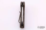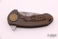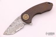 This F3 Compact by Curtiss Knives features a Damasteel tanto blade with notched thumbrest and flipper. The handle has a jigged and anodized titanium frame and backspacer, tip up anodized titanium clip, anodized titanium screws, lanyard hole at the butt. Has a stainless steel lockbar insert and rides on bearings. Comes with nylon zippered case and COA. Excellent condition.