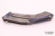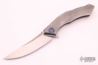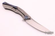 This Polutchotkiy is a collaborative effort between Dmitry Sinkevich and the Shirogorov brothers. It features an upswept tumbled blade with flipper. The handle is comprised of a titanium frame with machined handle contours and anodized pivot, backspacer and tip up pocket clip. Hidden lanyard hole in pocket clip. Great blade seating, detent and lock up. Flips smoothly on a multi row bearing system. Includes original box and microfiber cloth. Excellent condition. #127 of 200.