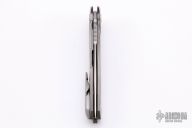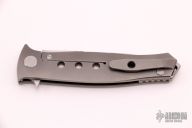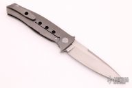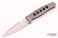 This "Russian Dr. Death" is a collaboration between Sergey Shirogirov and Tom Mayo, this one is #38, only 100 will be made. The blade with tumble finished with nearly mirror polished hand rubbed satin finished flats, notched thumbrest and flipper. The handle has a milled and blasted titanium frame with classic hole pattern, titanium backspacer with lanyard hole and jimping, tip up titanium clip with hole through clip and all the way through the frame, stainless lockbar insert. Has the Mayo and Shirogorov logos near the butt. Nice detent, lockup and perfect blade seating. Comes with original box and cleaning cloth. Excellent condition.