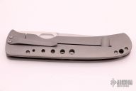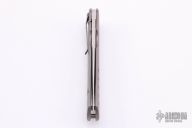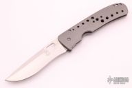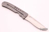 This XL TNT framelock by Tom Mayo features a hand rub satin finished recurve Stellite 6K blade with false top edge and thumbhole. The handle has a bead blasted titanium frame with hole pattern and a matching tip down clip, lanyard hole at the butt. Excellent condition. Come swith velcro case. Nice detent, lockup and blade seating.
