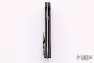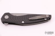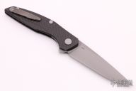 This model 111 flipper by Shirogorov Knives has a flat ground blade with flipper. Handle is contoured/textured carbon fiber with a titanium tip up clip and backspacer, stainless steel single liner. Dead center blade seating, excellent detent and lockup, and flips superbly. Comes with original box and papers. Knife is in excellent condition.