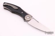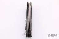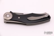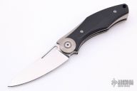 This Darke by Shirogorov and Sinkevich has a flat ground tumble finished blade with thumbhole. Handle has black G-10 scales and backspacer, titanium liners and tip up clip. Dead center blade seating, excellent detent and lockup. Comes with original box. Knife is in excellent condition. #25/100