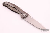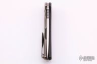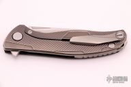 This Hati by Shirogorov Knives features a drop point tumble finished blade with a notched thumbrest and flipper. The handle is comprised of a carbon fiber and anodized titanium frame over a titanium backspacer with recessed lanyard bail and 3D machined titanium pocket clip is positioned for right hand, tip up carry. Comes with original box. Excellent condition.