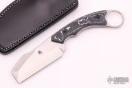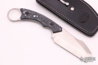 This Kerazel II by Graham Knives features a satin finish blade with sharpened front edge, .122" blade stock, 1.333" blade depth. Full tang construction with fat carbon scales and a ring at butt. Includes a custom black leather sheath. New from maker at the 2021 Blade Show.