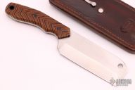This Cleazel by Graham Knives features a satin finish blade with sharpened front edge, .130" blade stock, 1.563" blade depth, full tang construction with unique micarta scales. Includes a custom brown leather sheath. New from maker at the 2021 Blade Show.