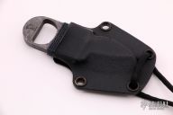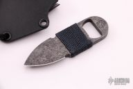 This FacK by CBJ and Chris Gish features a chisel ground blade with dark tumble finish, .245" blade stock adn 1.037" blade depth, full tang construction with cord wrap. Comes with a kydex neck sheath. New from maker at the 2021 Blade Show.