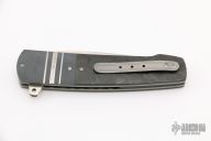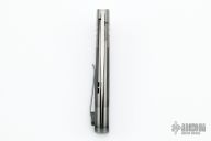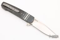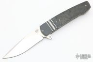 This LL07 linerlock flipper by Herucus Blomerus features a hand rubbed, satin finished blade with polished flats and flipper. The handle has fluted zirconium bolsters, marble  carbon fiber scales with blasted titanium liners, black G-10 backspacer and a tip up milled titanium clip. Blade is centered when closed, nice detent and lockup. Very smooth flipping action, rides on IKBS. Comes with velcro case and COA. New from maker.