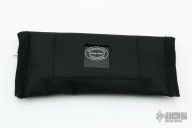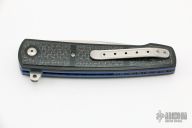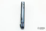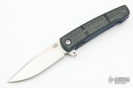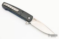 This LL07 linerlock flipper by Herucus Blomerus features a hand rubbed, satin finished blade with polished flats and flipper. The handle has black G-10 scales with silver lightning strike carbon fiber inlays, anodized titanium liners, notched black G-10 backspacer and a tip up milled titanium clip. Blade is centered when closed, nice detent and lockup. Very smooth flipping action, rides on IKBS. Comes with velcro case and COA. New from maker.