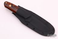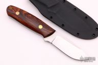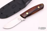 This KS-1 Master Skinner by Dozier Knives features a satin finished blade with .161" blade stock and 1.139" blade depth, full tang construction. The handle has cocobolo scales with brass pins and lanyard hole. Comes with kydex sheath with belt clip. New from maker at the 2021 Blade Show.