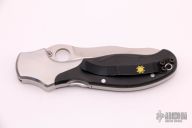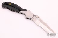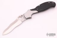 This C104BMP from Spyderco features a satin finish Kris style blade with thumb hole. The handle is comprised of stainless steel bolsters and black G10 scales over steel liners, backspacer and lock bar. Black coated steel clip positioned for tip up carry. Lanyard tube in pommel. Excellent condition. Includes original box. This model is discontinued.