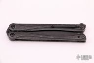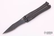 This Balisong from Brous Blades features a satin finished clip point recurve blade with notched thumbrest. The handle is comprised of a black finished stainless steel frame over barrel spacers, stainless steel tip up pocket clip. Numbered #228/500. Includes padded vault style case. Excellent condition.