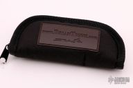 This Tighe One On Button Lock Auto by Brian Tighe has a satin finished drop point blade with raised thumb rest and milled bevels. Handle is bead blasted titanium with textured orange/black G-10 inlays, and has a fileworked spine and belly. Bead blasted titanium tip down clip. Excellent action, lockup, and blade seating. Excellent condition. Comes with a zippered case.