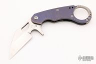 This Burung by Medford features a satin finished blade with thumbhole and flipper. The handle has a tumbled and anodized titanium frame with a tumbled titanium backspacer and a tip up reversible clip. Nice detent, lockup and blade seating. Comes with original box. Excellent condition.