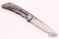 The Spartan Harsey Folder 3.25 “SHF 3.25” This is Spartan Blades latest folder collaboration with legendary knife maker, William "Bill" Harsey Jr. The SHF 3.25 is the knife many of you have been waiting for! A reliable 6AL4V titanium frame-lock knife with a 3.25” CPM S45VN blade. Easy to carry and comfortable in the hand; a truly exceptional gentleman's (or ladies) folder. Constructed like its award winning big brother the SHF, the SHF 3.25 is totally made of 6AL-4V titanium, except the pivot, blade and stop pin. This medium sized folder has a reversible pocket clip and dual thumb studs allowing for left and right hand carry. If you are looking for a high quality and well-designed folder this is one you should strongly consider! Comes with the original box. Excellent condition.