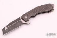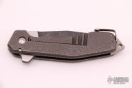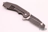 This GL Razel Flipper by Jon Graham features a two-tone finished blade with multi-grind and flipper. The handle has a milled, textured and tumbled titanium frame with tip up clip and a matching backspacer. Nice detent, lockup and blade seating, rides on bearings. Excellent condition. Comes with a zippered case. Dated 10-19-18