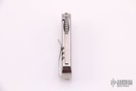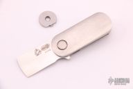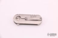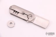 This Owl EDC Flipper by Dairrel Caston features a satin finished chisel ground blade with a notched thumbrest. The handle has a satin finished titanium frame with a matching tip up pocket clip. S/N 03/10. New from maker!