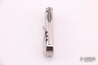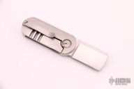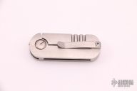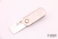 This Owl EDC Flipper by Dairrel Caston features a satin finished chisel ground blade with a notched thumbrest. The handle has a satin finished titanium frame with a matching tip up pocket clip. S/N 06/10. New from maker!