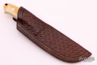 "My interest in knives started when my father gave me my first hunting knife at the young age of 12 years old. I started collecting knives about 1985. In 1995 I started repairing hunting knives, sharpening, and repairing handles so that I could resell them. I also went to swap meets and bought files to make knives which lead to better steel and handle materials. It just evolved into what it is today, over 25 years later. I went from a file and sandpaper to a 72” belt sander. I talked to every knife maker I saw to further my education in developing my techniques to make a better knife. I have never stopped learning new techniques to use. All of this helped me to progress into the knife world. My father taught me to do leather work so I hand make all of the sheaths for the knives. Each knife is numbered and has its very own matching numbered sheath that has been especially molded to that knife."