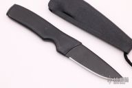 This Mirage X Micro by Mad Dog knives features a ceramic blade with black coating, unlike the "Frequent Flyer" which has a black G-10 blade. Has .254" blade stock and 1.095" blade depth, hidden tang construction with rubber coated handle. Comes with kydex neck sheath with no metal connectors. This knife is sterile and non-magnetic. Excellent condition.