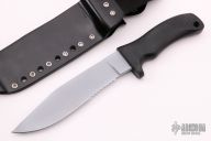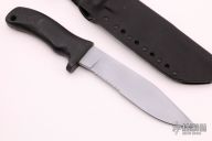 This ATAK 2 by MadDog Knives features a partially serrated blade. .250" stock. 1.475" blade depth. Selectively tempered, the knife has a Rockwell C-scale hardness of 62 at the edge (as hard as a file), and HRC 50-54 throughout the spine and hidden full tang. Hard chrome blade finish. With "Mad Dog" and ATAK2 on the blade.The handle is designed to be ergonomic and has the ability to withstand tremendous punishment with little or no damage. It is hard and tough enough to be used as an impact tool. Includes a ATAK Combat sheath. Has some light scuffs, otherwise excellent condition. Blade Steel: Starrett 496-O1 high carbon tool steel