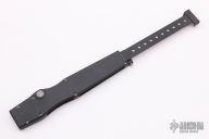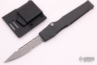 This is an original Halo (aka Halo I) and features a bead blast partially serrated blade and gray aluminum frame. The serrations are hand cut on this knife. Has strong firing and retracts via charging handle. The frame has a few scuffs, otherwise excellent condition. Comes with kydex sheath.