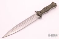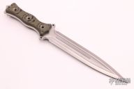 This FMV8 by Busse Knives features a competition finished double-edged blade with .240" blade stock and 1.347" blade depth, full tang construction with black/green G-10 scales. Excellent condition.